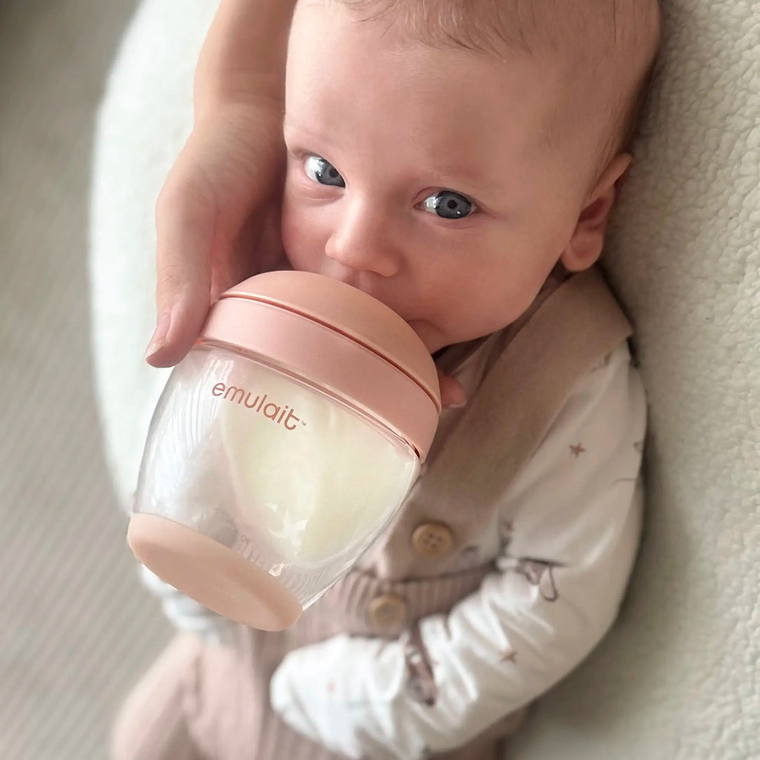 Emulait is a first-of-its-kind biomimetic feeding system unlike the conventional baby bottles that you may be familiar with. Inspired by nature, our bottles offer the healthiest and most natural feed by preserving oral skills, allowing baby to control and pace their feed, avoid overfeeding, and foster the personal bond of breastfeeding. The Emulait bottle also supports easier transitions between breast and bottle, to promote longer-term breastfeeding.